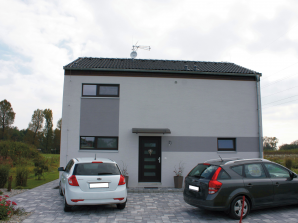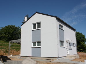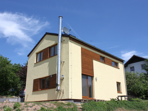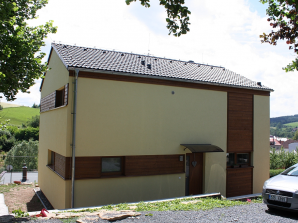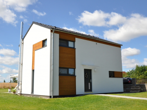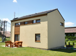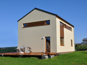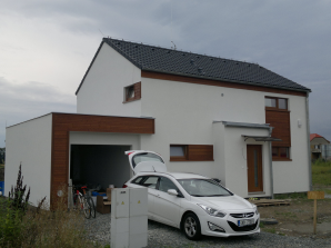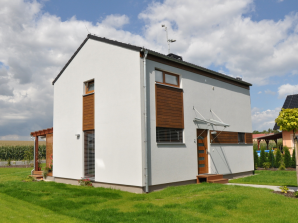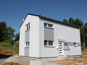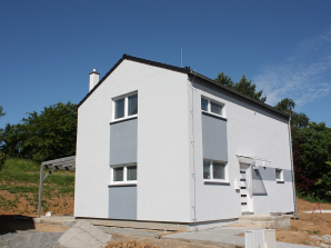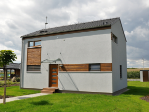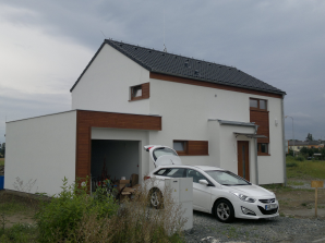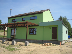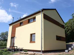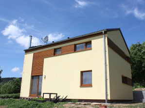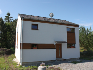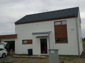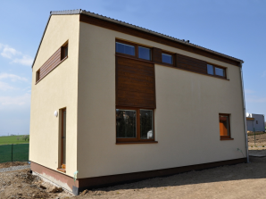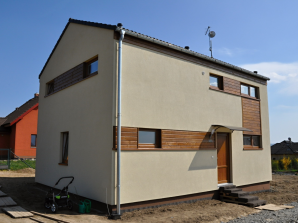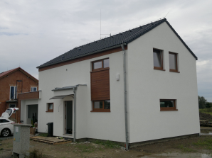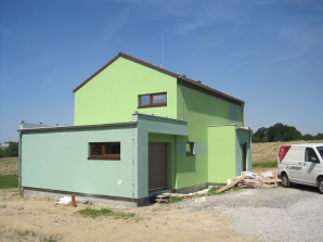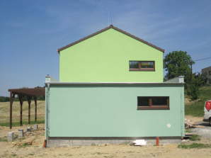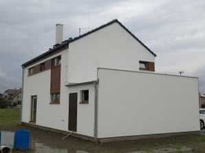 - obvodové stěny s vnitřní izolací 120 + 40 mm a vnější termofasádou 150 mm uzavřenou strukturní barevnou omítkou