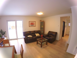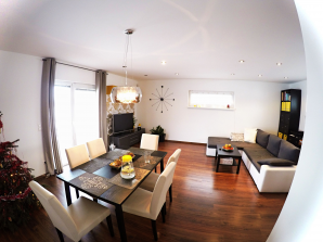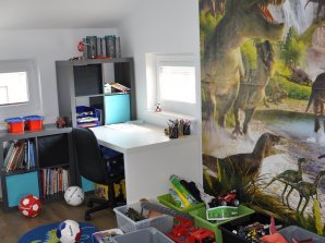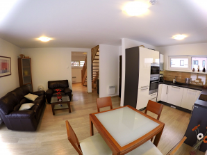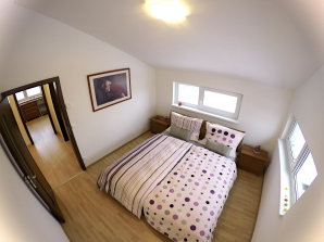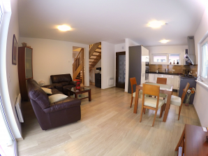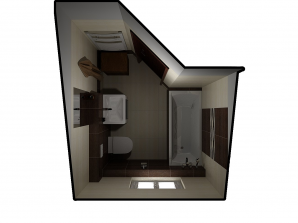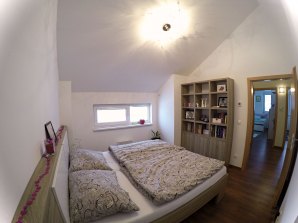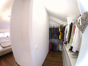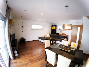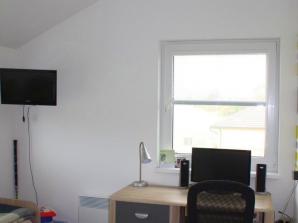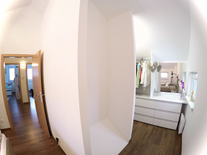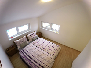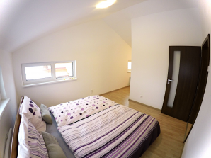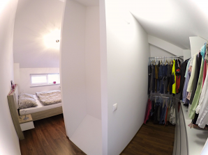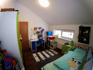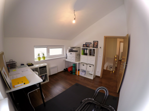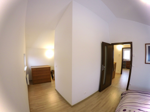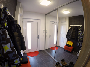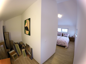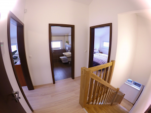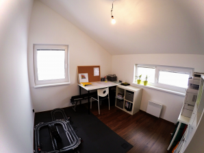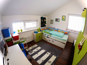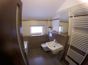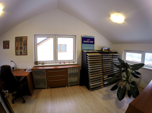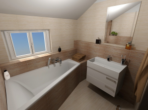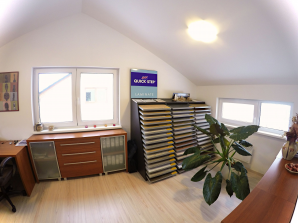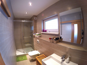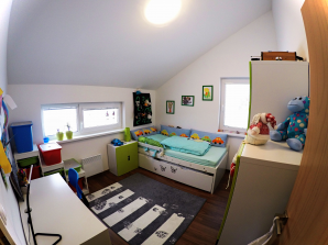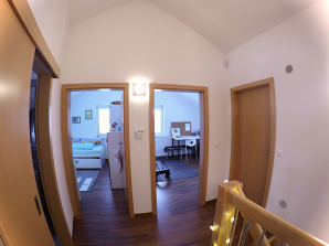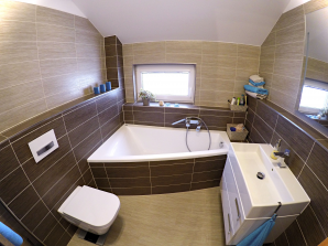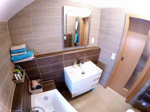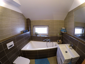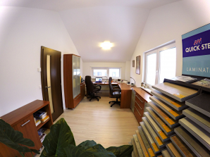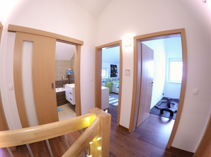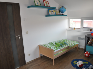 - laminátová podlaha nebo koberec v obytných místnostech a na chodbě v podkroví, v ostatních místnostech dlažba