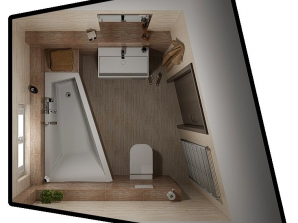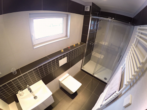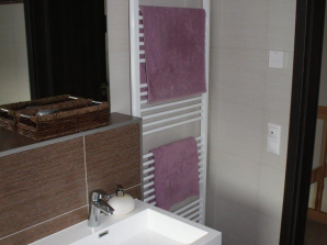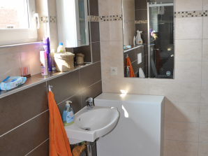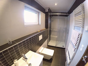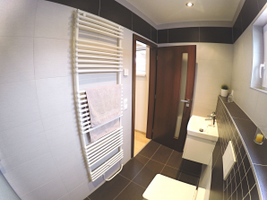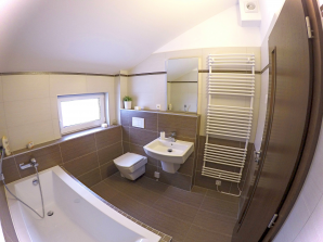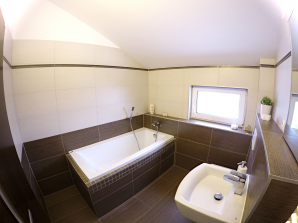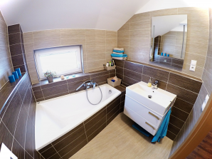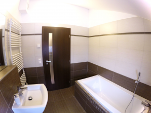 - sanitární vybavení - umyvadlo ze sanitární keramiky v bílé barvě se směšovací pákovou baterií, umývátko ze sanitární keramiky v bílé barvě se směšovací pákovou baterií, vana s pákovou baterií a se sprchovou hadicí a růžicí, sprchový kout včetně baterie se sprchovou hadicí a růžicí a kombinované WC