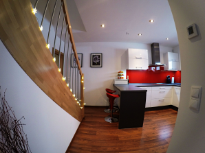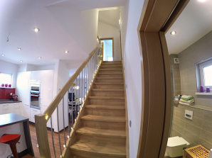 - schodiště mezi přízemím a obytným podkrovím v provedení buková spárovka