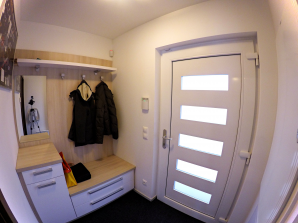 - vchodové domovní dveře v provedení masiv nebo z 5-ti komorových PVC profilů v bílé barvě se třemi závěsy a pětinásobným uzávěrem