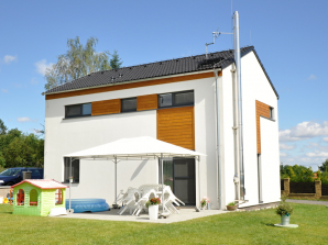 - okna a terasové dveře vyrobené z 6-ti komorových PVC profilů v bílé barvě s izolačním trojsklem, součinitel prostupu tepla celého okna Uw ≤ 1,0 W/(m².K)