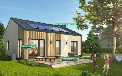 - okna a terasové dveře vyrobené ze 7-mi komorových PVC profilů v bílé barvě s izolačním trojsklem, součinitel prostupu tepla celého okna Uw ≤ 1,0 W/(m².K)