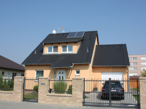 - obvodové stěny s vnitřní izolací 120 + 40 mm a vnější termofasádou 150 mm uzavřenou strukturní barevnou omítkou